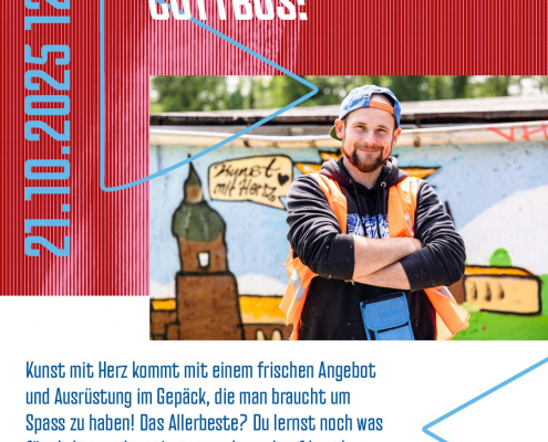 Kunst mit Herz kommt mit einem frischen Angebot und Ausrüstung im Gepäck, die man brauch um Spaß zu haben! Das Aller Beste? DU lernst noch was fürs Leben…oder zeigst was DU so drauf hast!